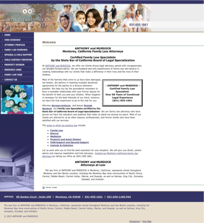 Adamis Eleni D Anthony and Murdock is listed under Family Law in Monterey, California .