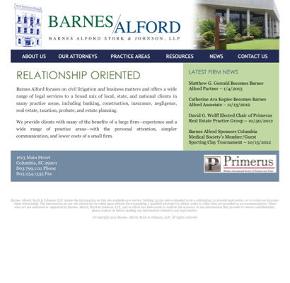 Barnes Alford Stork & Johnson LLP is listed under Attorneys in Charleston, South Carolina .