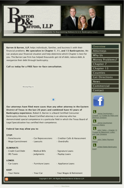 Barron & Barron LLP (All Law Firms) is practicing law in Plano, Texas. This lawyer is listed on Lawyer Map under the main category Bankruptcy Lawyers in All Law Firms.