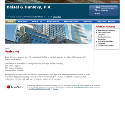Beisel, Bradley N - Beisel & Dunlevy PA (Lawyers) is practicing law in Minneapolis, Minnesota. This lawyer is listed on Lawyer Map under the main category All Law Firms in Lawyers.