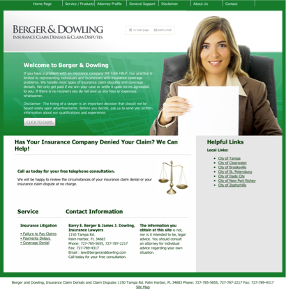 The focus of our practices is on insurance claim denials and insurance disputes. We handle life, health, disability, homeowner, auto and many other types of warranty, bond, commercial insurance claim denials. If your insurance company won't pay your claim for any reason, we may be able to help.Berger and Dowling (Insurance Law Attorneys) is practicing law in Palm Harbor, Florida. This lawyer is listed on Lawyer Map under the main category Lawyers - All in Insurance Law Attorneys.