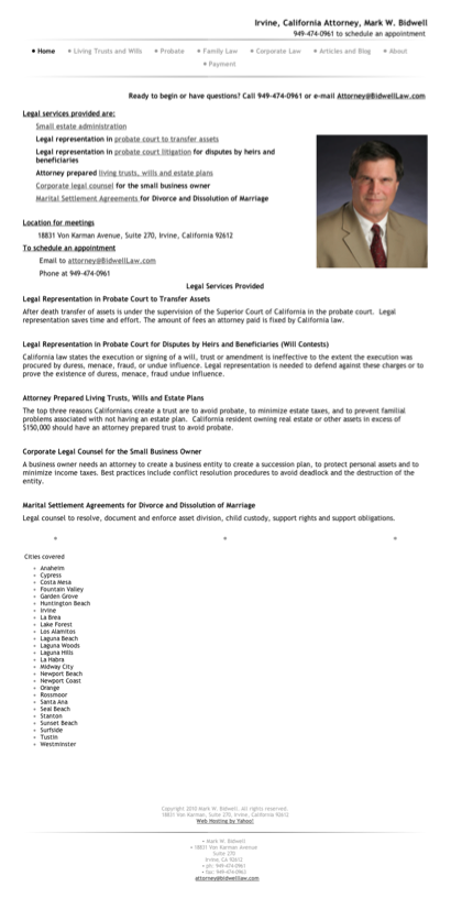 Mark Bidwell attorney lawyer probate revocable living trust estate planning corporate counsel family law divorce elder law will contests probate litigation uncontested divorce