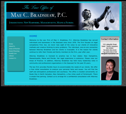 Bradshaw Mae C PC (Attorneys) is practicing law in North Hampton, New Hampshire. This lawyer is listed on Lawyer Map under the main category Lawyers - All in Attorneys.
