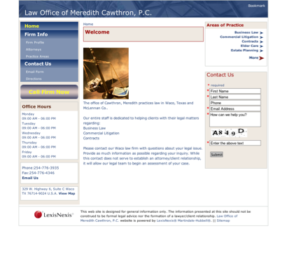 Meredith Cawthron, P.C. pursue cases of Business Law, Commercial Litigation, and Contracts in Waco Texas.- From http://www.lawyers.com/meredithcawthron