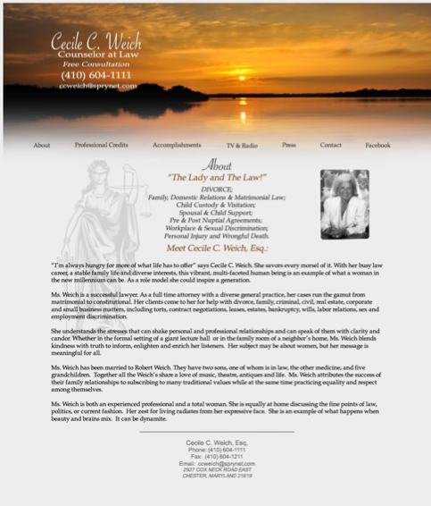 Cecile C. Weich (Attorneys) is practicing law in Chester, Maryland. This lawyer is listed on Lawyer Map under the main category Lawyers - All in Attorneys.