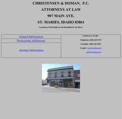 Christensen & Doman PC is listed under Attorneys in St Maries, Idaho .