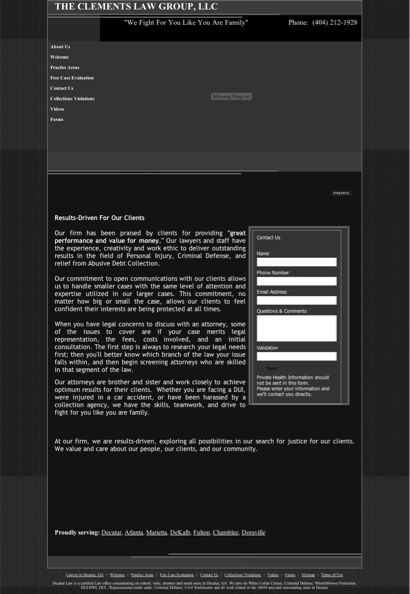 You can reach us on phone number (404) 212-1928, fax number (404) 212-1948 or email address kirby@clementslawgroup.com. Our office is located on 4555 Flat Shoals Pky, #106, Decatur, GA,