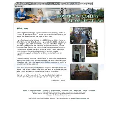 Howard W. Collins Attorney at Law in Salem Oregon. Personal Injury Law Divorce Law Divorce and Kids General Divorce Juvenile Law Frequently Asked Questions Personal injury auto automobile motorcycle pedestrian bicycle truck commercial negligence accident whiplash Lawyer Attorney Salem Oregon Marion Yamhill Polk county contingency percentage consultation trial experience experienced Yamhill County Yamhill co Polk County Polk co Marion County Marion co Salem Oregon Attorney attorneys in Salem Oregon attorneys in Salem Keizer Oregon Keizer Oregon Attorneys howard collins lawyer commercial st. salem or reviewcall attorney collins for auto salem oregonsalem oregon attorney 503 399-9778law office of howard collins 1415 commercial howard attorney yamhill county oregon
