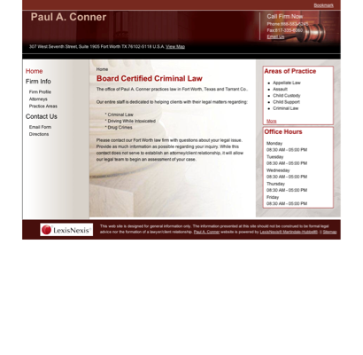 Conner- Paul A. Attorney is listed under Criminal Law in Fort Worth, Texas .