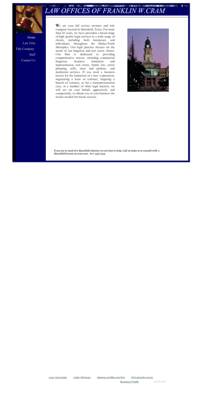 Cram Franklin W PC is listed under Business Services in Mansfield, Texas .