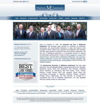 You can reach us on phone number (941) 366-8888, fax number (941) 954-7777 or email address pcrauwels@matthewseastmoore.com. Our office is located on 1777 Main St, #500, Sarasota, FL,