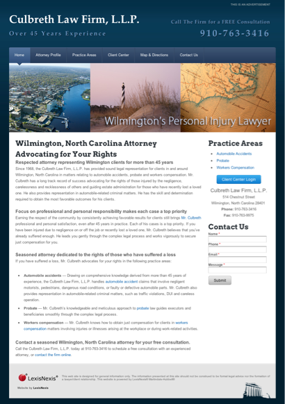 You can reach us on phone number (910) 763-3416, fax number (910) 763-9975 or email address culbrethlaw@juno.com. Our office is located on 514 Chestnut St, Wilmington, NC,