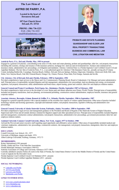 De Parry Astrid PA is listed under Attorneys in Deland, Florida .