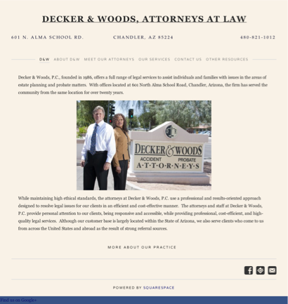 The information below about Decker & Woods- P.C. is optional and only visible if provided by the owner. Call (480) 821-1012 to learn more.