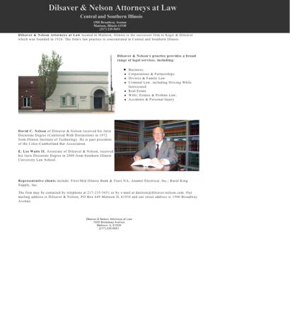 Dilsaver & Nelson is listed under Banking & Investment Law Attorneys in Mattoon, Illinois .