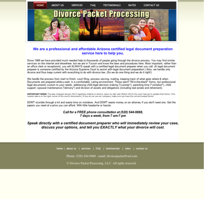 The information below about Divorce Packet Processing is optional and only visible if provided by the owner. Call (520) 544-9888 to learn more.