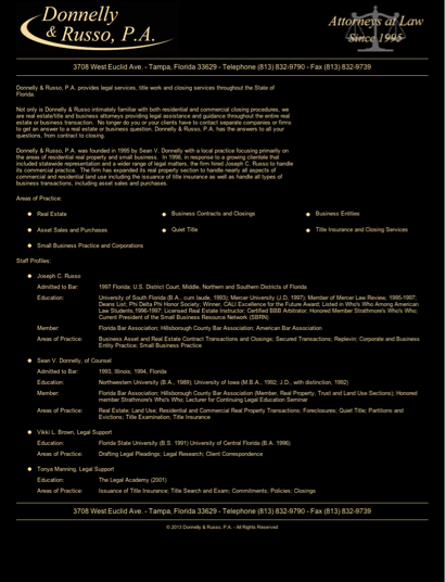The information below about Donnelly & Russo- PA is optional and only visible if provided by the owner. Call (813) 832-9790 to learn more.