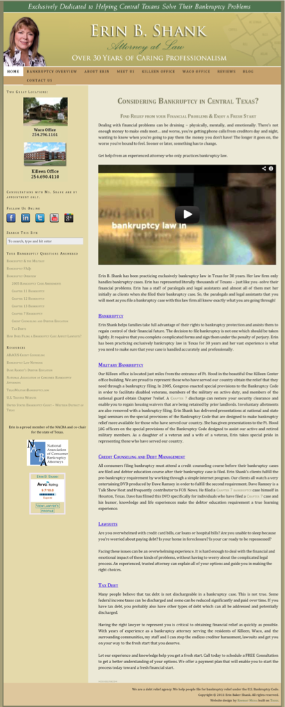 Erin B. Shank, PC is a Bankruptcy Law Firm located in Waco, Texas which assists families throughout Central Texas. With extensive training and years of experience helping families throughout Central Texas, Erin B. Shank is here to help you conquer your financial obstacles. Whether you need guidance and advice regarding bankruptcy, debt consolidation, tax debt or other financial problems, our friendly and qualified team can help you find solutions that will enable you to manage or eliminate your debt.Erin B. Shank, P.C. (Bankruptcy Services - All Law Firms) is practicing law in Waco, Texas. This lawyer is listed on Lawyer Map under the main category Credit & Debt Services in Bankruptcy Services - All Law Firms.