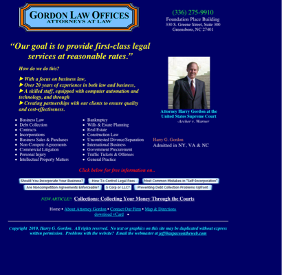 Harry G. Gordon Gordon Law Offices Harry Gordon H. G. Gordon North Carolina Law Virginia Law New York Law Contracts wills legal documents