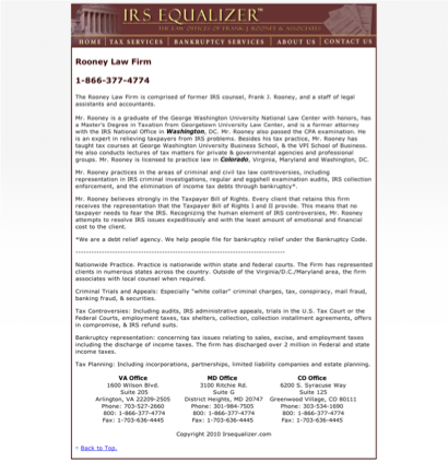 IRS Equalizer is listed under Bankruptcy Attorneys in Arlington, Virginia .