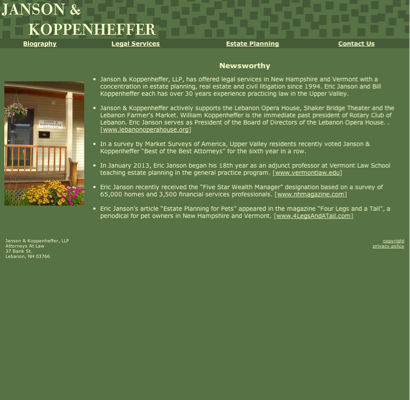 Janson & Koppenheffer is listed under Attorneys in Lebanon, New Hampshire .