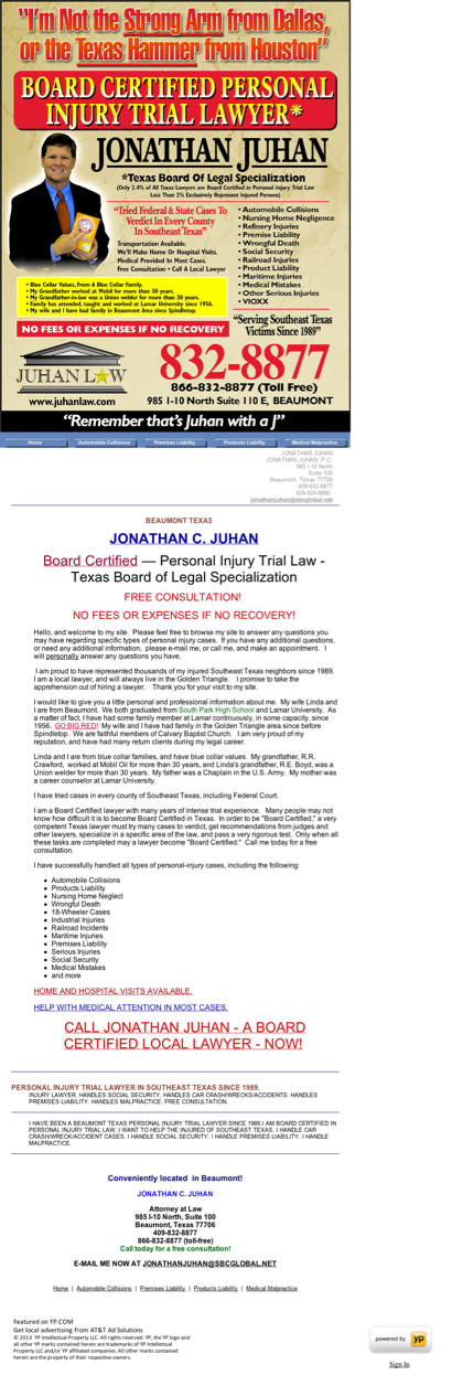 Jonathan C. Juhan is listed under Vehicular Accident Attorneys in Beaumont, Texas .