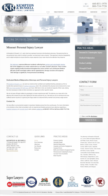 Kempton and Russell is listed under Accident Attorneys in Sedalia, Missouri .