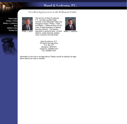 Woodburn Oregon Attorney Lawyer Personal Injury Criminal Law Misdemeanor Drunk Probate Trusts Wills Litigation Marion County Willamette Valley Real estate Arbitration Phil J. Hand Walter J. Ledesma Motor Vehicle LLC trial Estate planning Debt Collections Lawyers droid-app://com.google.android.googlequicksearchbox