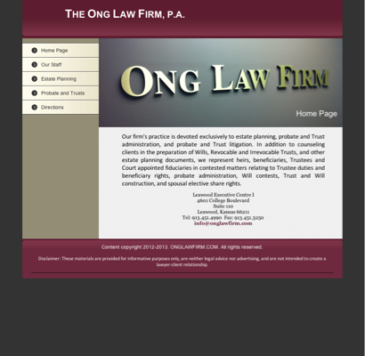 You can reach us on phone number (913) 451-4990, fax number (913) 451-3250 or email address onglaw@swbell.net. Our office is located on 4601 College Blvd, #280, Leawood, KS,
