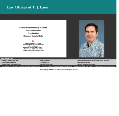 Law Offices of T J Lane is listed under Personal Injury Attorneys in Honolulu, Hawaii .