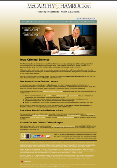 Iowa criminal defense lawyer criminal defense in Iowa Des Moines criminal defense McCarthy & Hamrock P.C. Des Moines Iowa DUI OWI attorneys criminal law DUI drug offenses sex crimes and assault drunk driving law firm laws legal Des Moines OWI drunk driving and criminal defense attorney lawyer court case cases appeal settlement compensation 515-279-8355