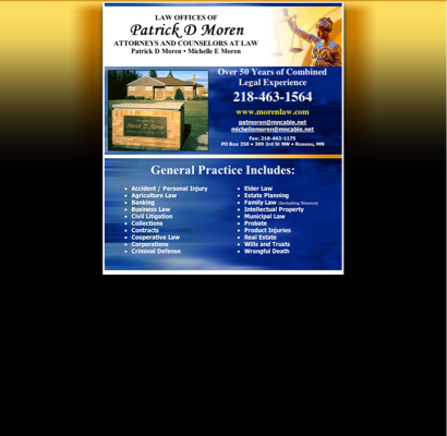 Moren Patrick D Attorney is listed under Attorneys in Roseau, Minnesota .