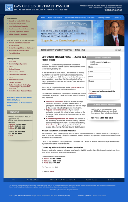 lawyer attorney law firm law office legal advice Social Security Disability SSI SSDI Claims pastor stuart plano
