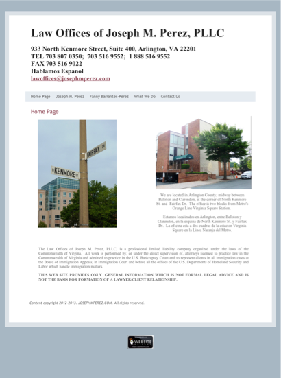 Perez, Joseph M - Joseph M Perez Law Office LLC is listed under Lawyers in Arlington, Virginia .