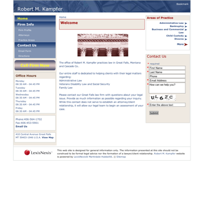Robert M. Kampfer (Administrative & Governmental Law Attorneys) is practicing law in Great Falls, Montana. This lawyer is listed on Lawyer Map under the main category Lawyers - All in Administrative & Governmental Law Attorneys.