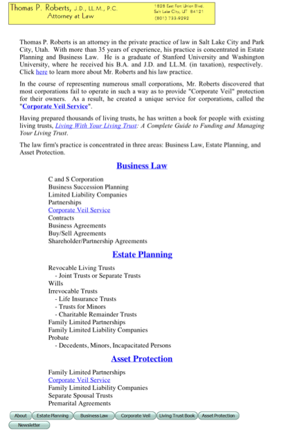 The information below about Roberts Thomas P Attorney is optional and only visible if provided by the owner. Call (435) 649-8311 to learn more.