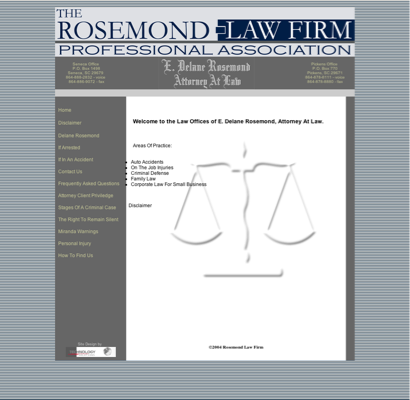 Rosemond Law Firm P A (Attorneys) is practicing law in Seneca, South Carolina. This lawyer is listed on Lawyer Map under the main category Lawyers - All in Attorneys.