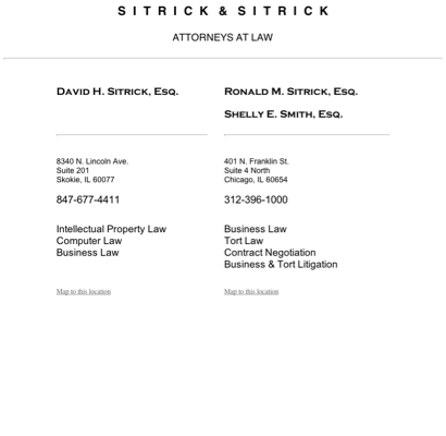 Sitrick, David H - Sitrick & Sitrick is listed under Lawyers in Skokie, Illinois .