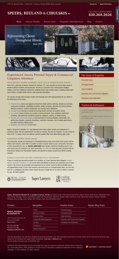 Speers Reuland & Cibulskis is listed under Personal Injury Lawyers in Aurora, Illinois .