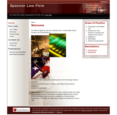 You can reach us on phone number (843) 623-2144, fax number (843) 623-6928 or email address spencerlaw@shtc.net. Our office is located on 301 W Main St, Chesterfield, SC,