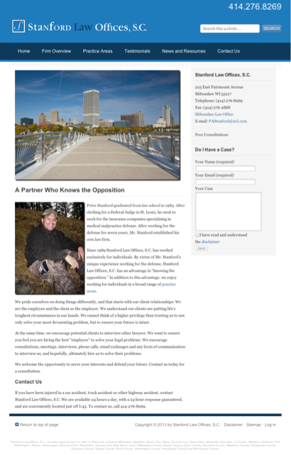 Stanford Law Offices SC is listed under Personal Injury Attorneys in Milwaukee, Wisconsin .