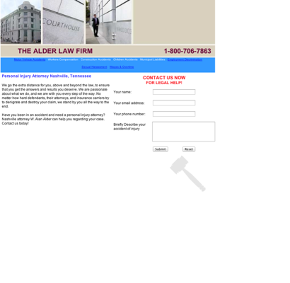 You can reach us on phone number (615) 783-2164, fax number or email address alanalder@thealderlawfirm.com. Our office is located on 3200 W End Ave, #500, Nashville, TN,