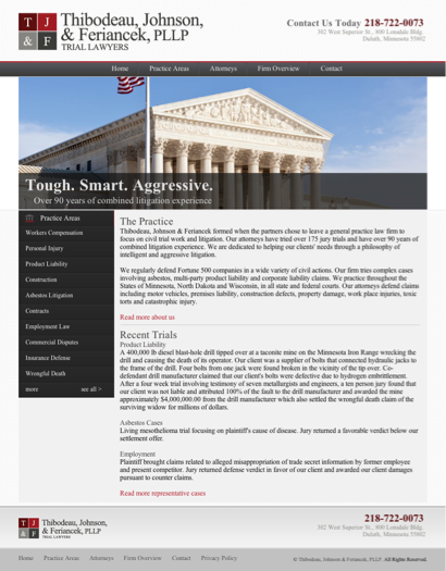 Thibodeau Johnson & Feriancek Pllp is listed under Lawyers in Duluth, Minnesota .